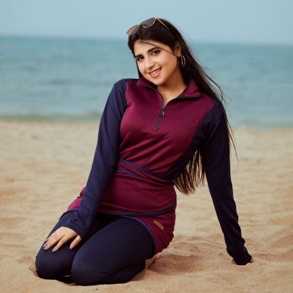 • contents :Four pieces (swimsuit body , pants , skirt and  turbon)